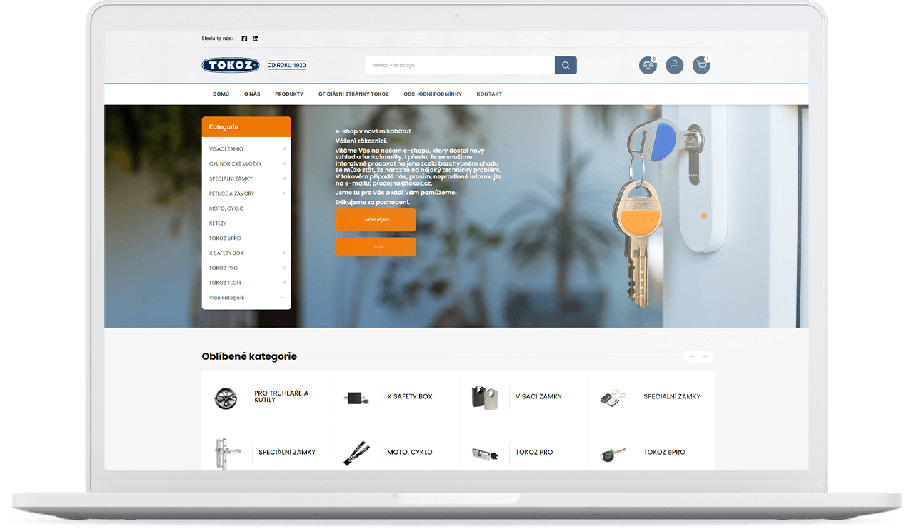 Značka Tokoz je synonymem pro české visací zámky a zabezpečení už více než 100 let. Aby však i taková legenda uspěla v digitálním světě, potřebovala silnou online prezentaci. Naše společná cesta začala už v roce 2024, kdy jsme Tokozu postavit zcela nový e-shop.