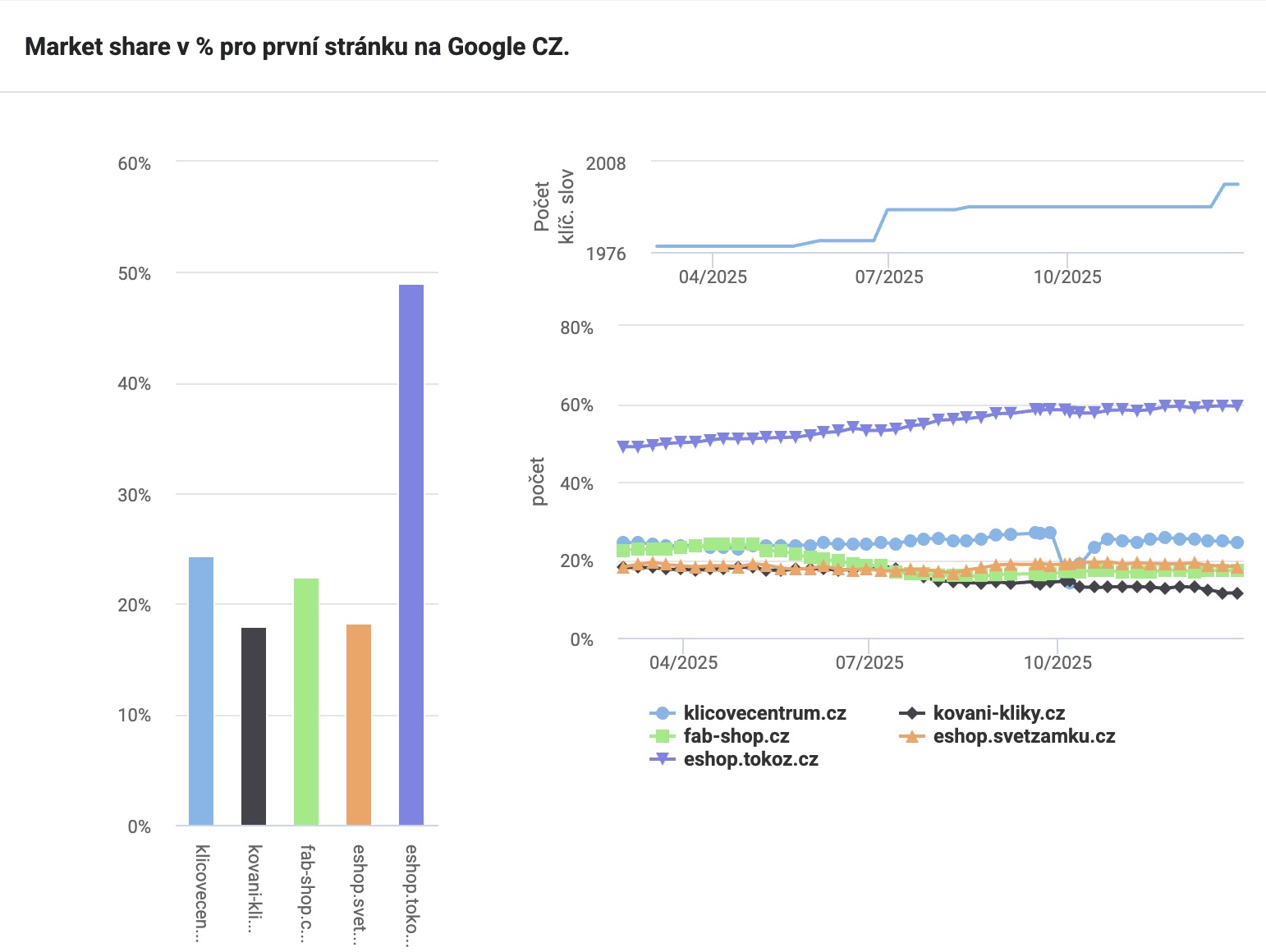 58% podíl klíčových slov na 1. straně vyhledávačů ve srovnání s největší konkurencí