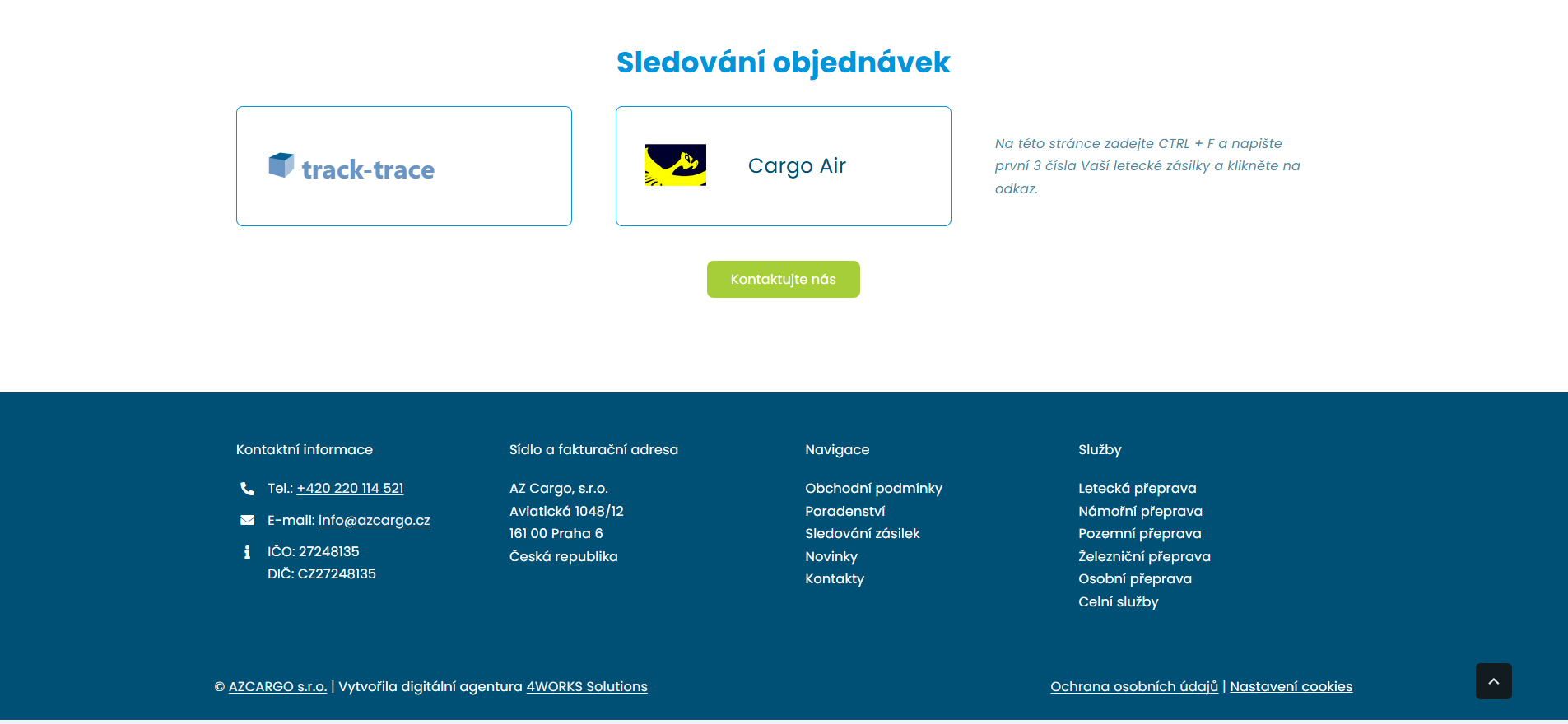 Webová prezentace AZ Cargo