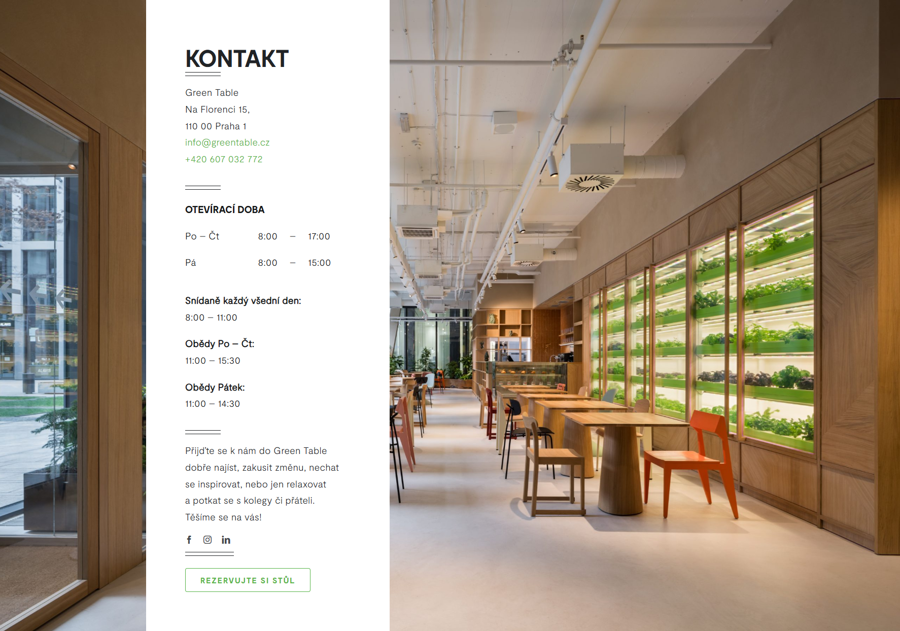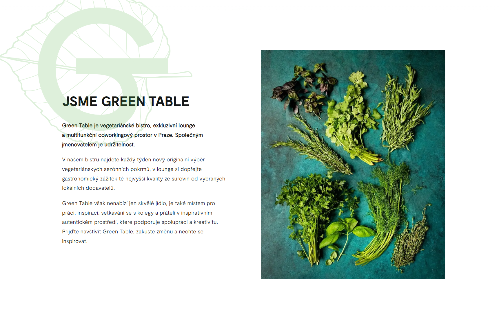 GreenTable je svérázný koncept vegetariánského bistra, gastro lounge a coworkingového/eventového prostoru situovaného v centru Prahy na Florenci. Web měl za cíl jasně komunikovat různorodé funkce provozu – od zdravé nabídky až po pronájem inspirativního místa pro práci a společenské události. Důležitou složkou zadání bylo zvýraznit udržitelnost, lokálnost a autorskou vizi projektu, včetně vizuálního ztvárnění šéfkuchařky Miluše Makó